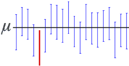 - If you repeat the process many times, if your method of computing intervals is correct, \(95\%\) of the intervals you computed will include the true value \(\mu\).