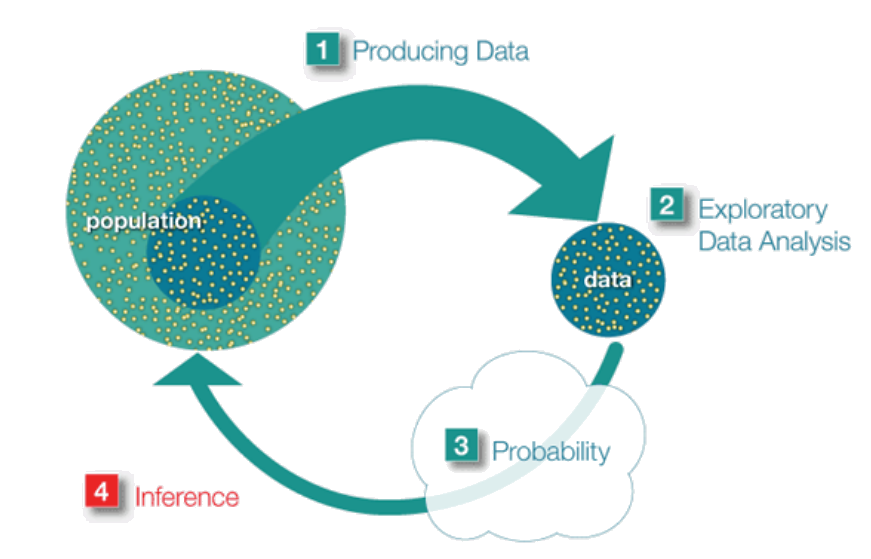 The end goal of statistics is to estimate the true values of the population parameters, such as the mean value \(\mu\) and the variance \(\sigma^2\). We try to get a sense of what \(\mu\) could be by pulling \(N\) samples from the population and studying it. Each sample is a random variable, \(S_i\), and we can compute their average