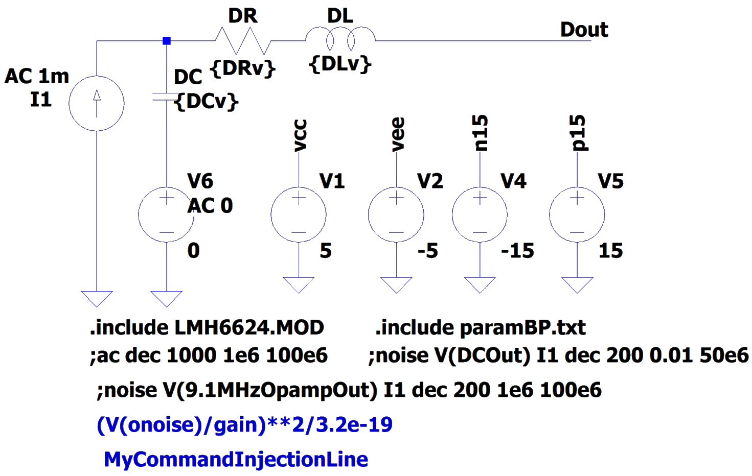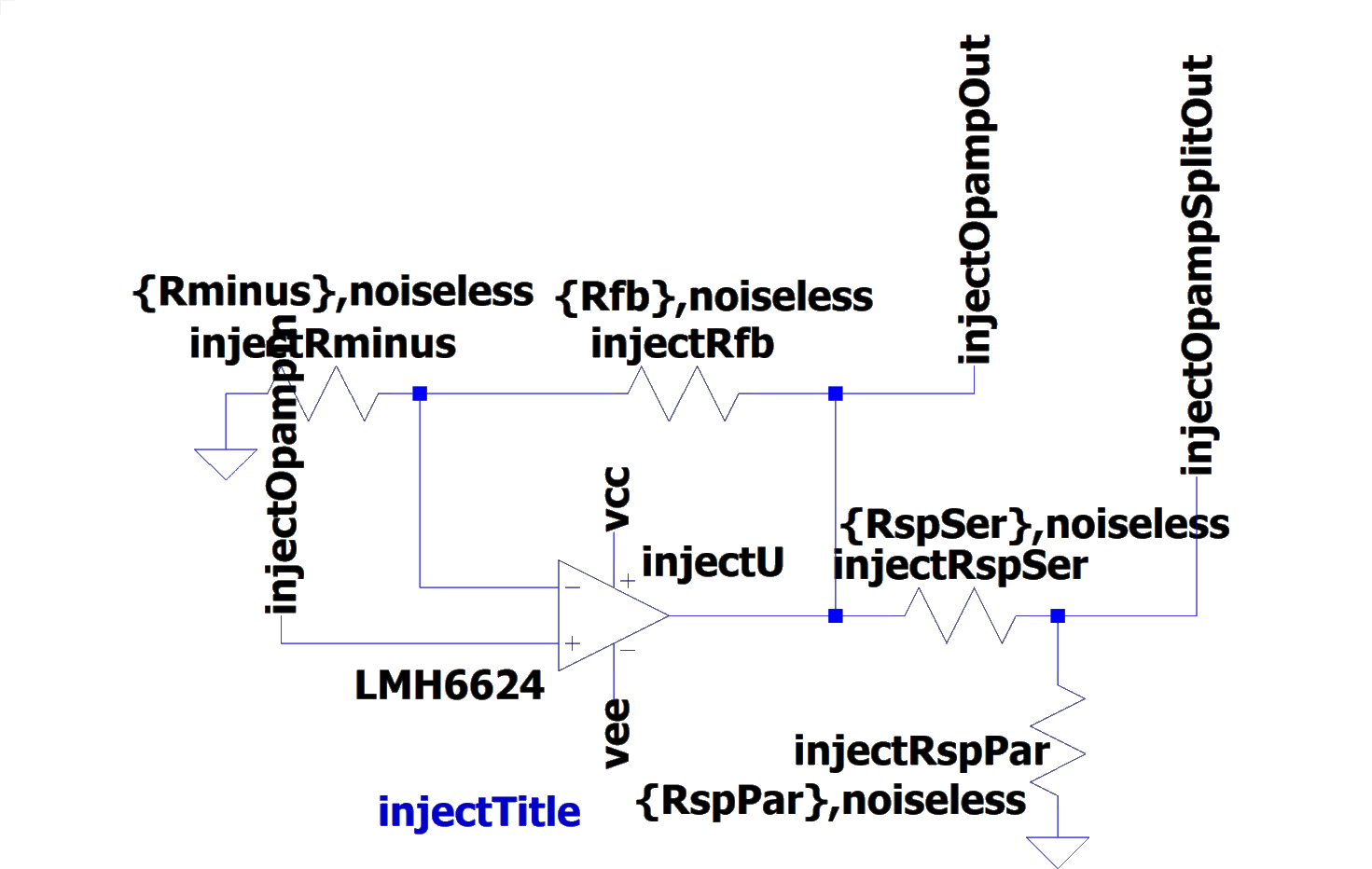 In order to pass the circuit created in the optimization loop to LTspice in automated way, we create a set of building block templates in LTspice, as shown in Figure 2. These blocks are completely defined by their input and output terminals and the place holder values for the elements.